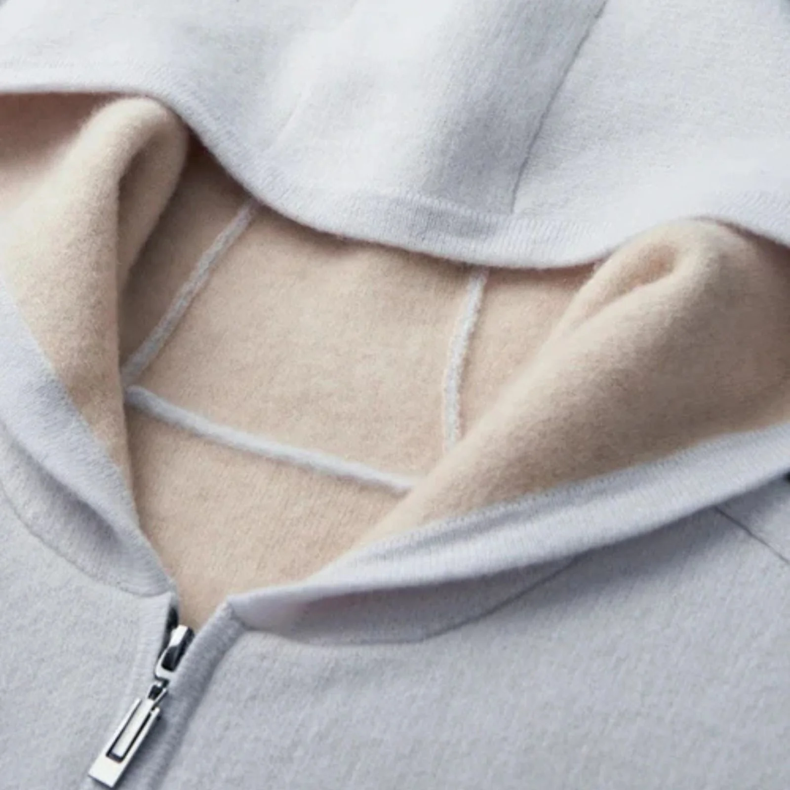 A men’s cashmere zip hoodie tailored for refined comfort and discreet luxury. Crafted with a featherlight touch, it delivers exceptional warmth without bulk. Perfect for coastal mornings or layered under a tailored coat for city commutes.