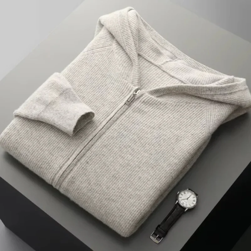 This men’s hoodie is crafted from extrafine merino knit, combining understated luxury with everyday versatility.
